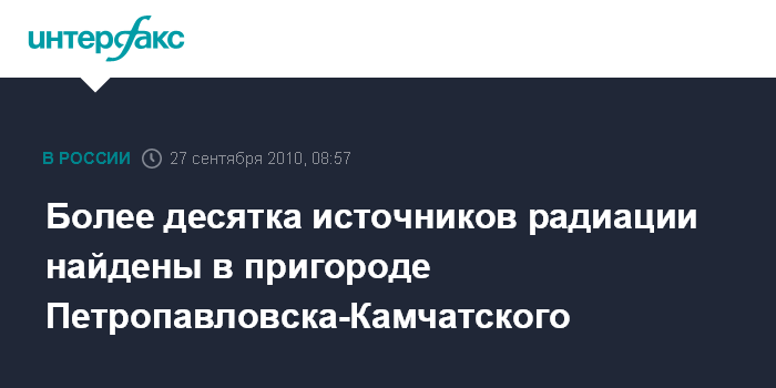 Петропавловск-Камчатский. 27 сентября. INTERFAX.RU - Сотрудники УФСБ России по Камчатскому краю обнаружили в лесополосе Петровской сопки в районе смотровой площадки Петропавловска-Камчатского более десятка источников радиоактивности.