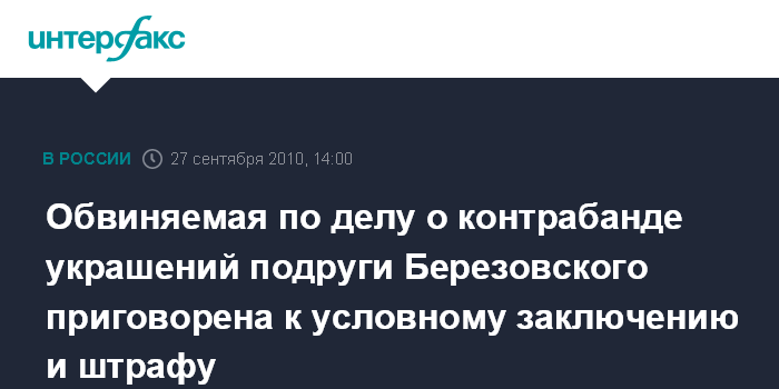 Обвиняемая по делу о контрабанде украшений подруги Березовского приговорена к условному заключению и штрафу