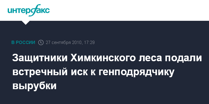 Москва. 27 сентября. INTERFAX.RU - Движение "В защиту Химкинского леса" подало встречный иск к ООО "Теплотехник" на 170 млн рублей за нанесение ущерба лесному массиву при строительстве трассы Москва - Санкт-Петербург.
