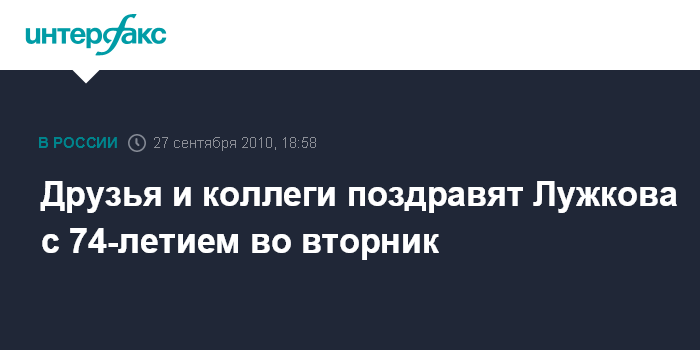 Москва. 27 сентября. INTERFAX.RU - Как ожидается, мэр Москвы Юрий Лужков будет принимать поздравления с минувшим 74-летием на своем рабочем месте во вторник.