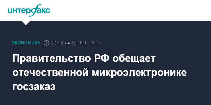 Москва. 27 сентября. INTERFAX.RU - Правительство РФ на рабочем совещании 10 сентября приняло решение о мерах по государственному регулированию российского рынка микроэлектроники,