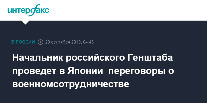 Начальник российского Генштаба проведет в Японии переговоры о военномсотрудничестве