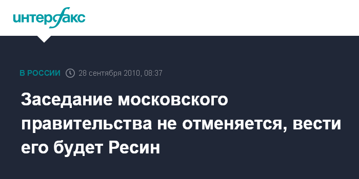 Заседание московского правительства не отменяется, вести его будет Ресин