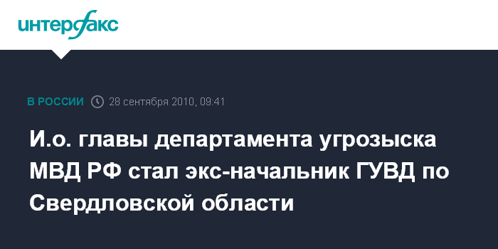 И.о. главы департамента угрозыска МВД РФ стал экс-начальник ГУВД по Свердловской области