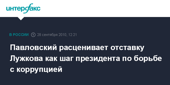 Павловский расценивает отставку Лужкова как шаг президента по борьбе с коррупцией