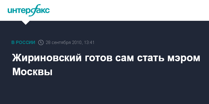 Томск. 28 сентября. INTERFAX.RU - Лидер ЛДПР Владимир Жириновский заявил о готовности претендовать на пост мэра Москвы.