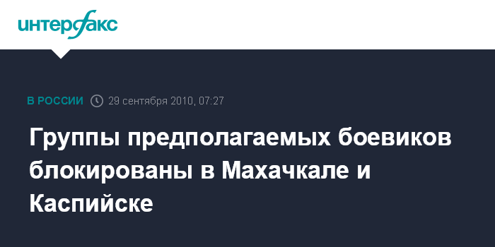 Махачкала. 29 сентября. ИНТЕРФАКС-ЮГ - Две группы подозреваемых в участии в НВФ блокированы в среду в Каспийске и Махачкале, сообщили "Интерфаксу" в пресс-службе УФСБ России по Дагестану.