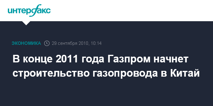 В конце 2011 года Газпром начнет строительство газопровода в Китай