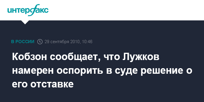 Москва. 29 сентября. INTERFAX.RU - Экс-мэр Москвы Юрий Лужков намерен обжаловать решение об отрешении его от должности в суде, сообщил "Интерфаксу" близкий друг бывшего мэра Москвы, депутат Госдумы, певец Иосиф Кобзон.