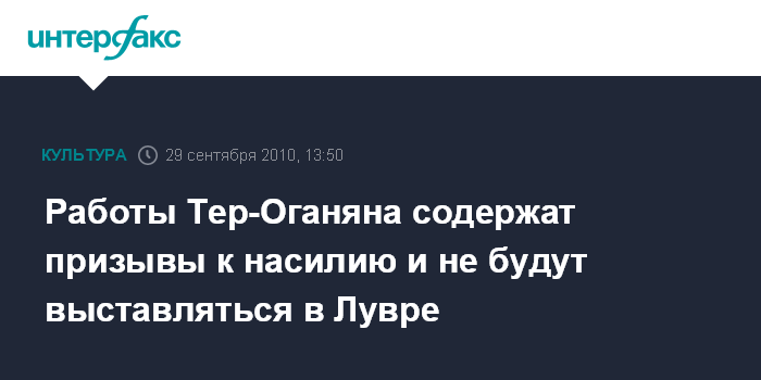 Работы Тер-Оганяна содержат призывы к насилию и не будут выставляться в Лувре
