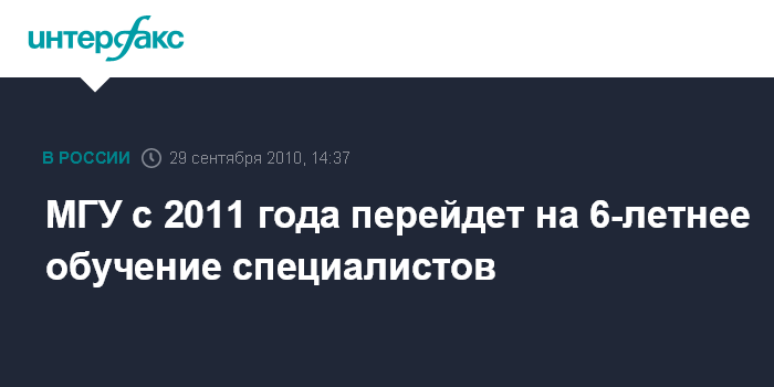 МГУ с 2011 года перейдет на 6-летнее обучение специалистов