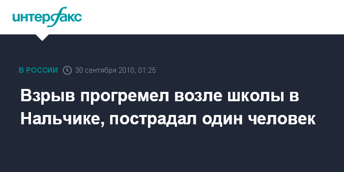Нальчик. 30 сентября. ИНТЕРФАКС-ЮГ - Взрыв прогремел в ночь на четверг в столице Кабардино-Балкарии Нальчике.