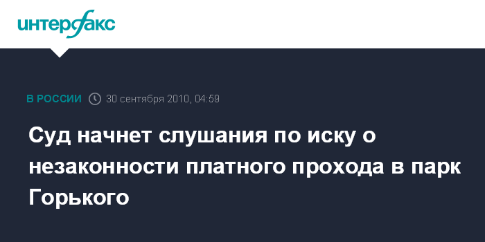 Москва. 30 сентября. ИНТЕРФАКС - Замоскворецкий суд Москвы в четверг проведет предварительные слушания по иску Общества защиты прав потребителя (ОЗПП) с требованием признать незаконным сбор платы за проход на территорию парка им. Горького.