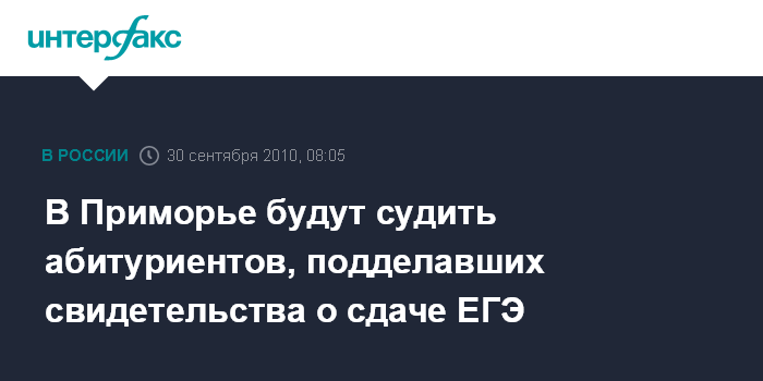 В Приморье будут судить абитуриентов, подделавших свидетельства о сдаче ЕГЭ