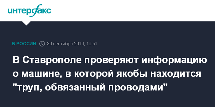 "В машине якобы обнаружен труп, обвязанный проводами", - сказал он агентству "Интерфакс".