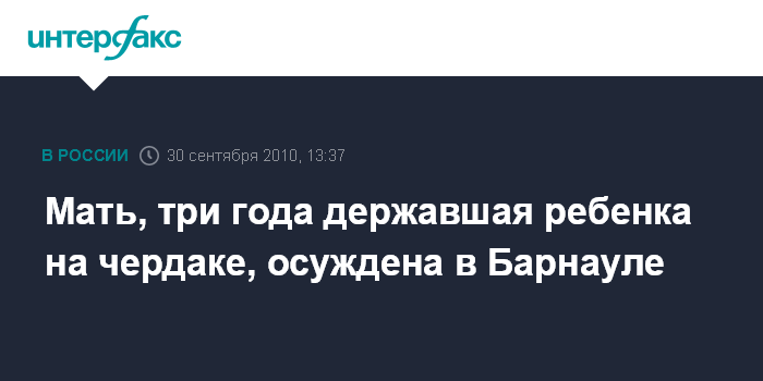 Мать, три года державшая ребенка на чердаке, осуждена в Барнауле