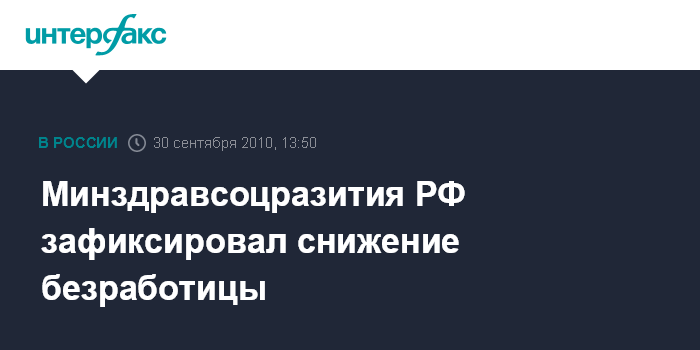 Минздравсоцразития РФ зафиксировал снижение безработицы