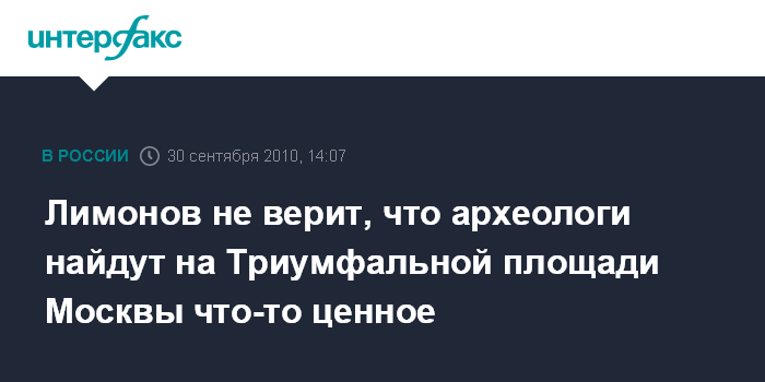 Лимонов не верит, что археологи найдут на Триумфальной площади Москвы что-то ценное