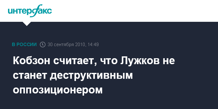 Кобзон считает, что Лужков не станет деструктивным оппозиционером