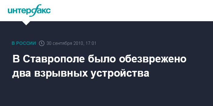 Ставрополь. 30 сентября. INTERFAX.RU - В Юго-западном районе Ставрополя сотрудниками правоохранительных органов было обезврежено два взрывных устройства.