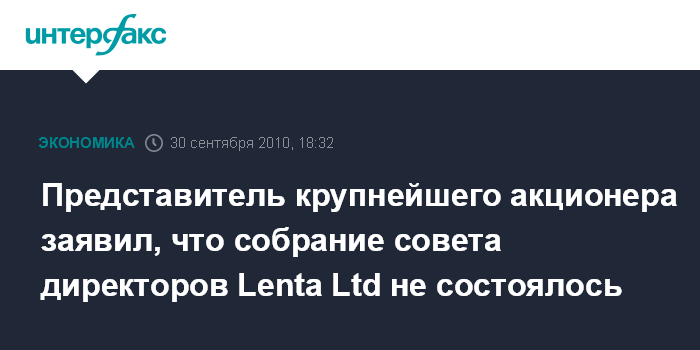 Представитель крупнейшего акционера заявил, что собрание совета директоров Lenta Ltd не состоялось