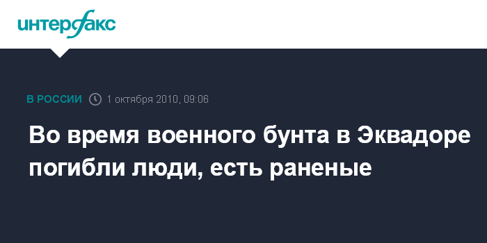 Кито. 1 октября. INTERFAX.RU - Министерство обороны Эквадора подтвердило в пятницу агентству ЭФЭ информацию о том, что при попытке бунта военных в стране были человеческие жертвы, не уточнив при этом их количество.