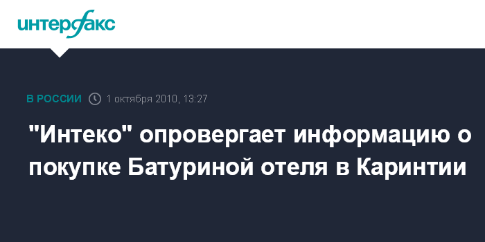 "Интеко" опровергает информацию о покупке Батуриной отеля в Каринтии