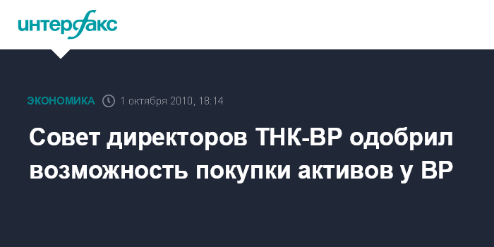 Совет директоров ТНК-ВР одобрил возможность покупки активов у ВР