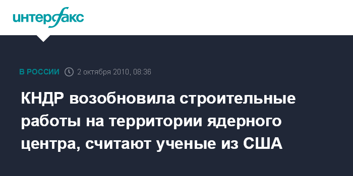 Лондон. 2 октября. ИНТЕРФАКС - Сделанный из космоса фотоснимок свидетельствует о том, что в КНДР решили возобновить строительные работы на территории ядерного центра в Йонбене, считают сотрудники вашингтонского Института научных исследований и международной безопасности.