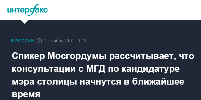 Спикер Мосгордумы рассчитывает, что консультации с МГД по кандидатуре мэра столицы начнутся в ближайшее время
