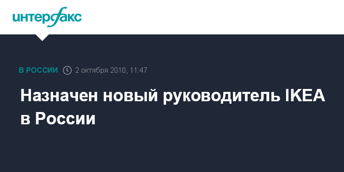 Москва. 2 октября.INTERFAX.RU - Шведский ритейлер IKEA, в начале этого года со скандалом уволивший главу своего российского подразделения, определился с новым руководителем бизнеса в РФ. С 1 октября генеральным директором российской IKEA стал Пер Вендшлаг, ранее возглавлявший Inter IKEA Centre Group в Австрии, Швейцарии и Юго-Восточной Европе, говорится в сообщении ритейлера. В сферу его ответственности, в том числе, входит строительство и управление сетью торговых центров "МЕГА".