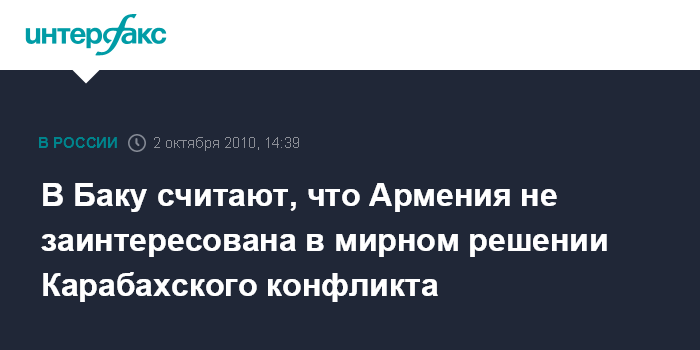В Баку считают, что Армения не заинтересована в мирном решении Карабахского конфликта