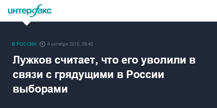 Лужков считает, что его уволили в связи с грядущими в России выборами