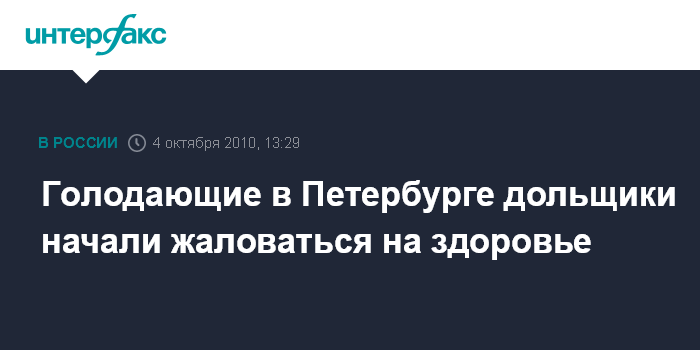 Санкт-Петербург. 4 октября. INTERFAX.RU - Голодающие в Петербурге дольщики на пятый день пожаловались на состояние здоровья.