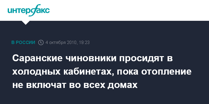 Саранск. 4 октября. INTERFAX.RU - Глава администрации Саранска (Мордовия) Владимир Сушков в наказание за срыв начала отопительного сезона в городе постановил не включать теплоснабжение в кабинетах городских чиновников, сообщает в понедельник пресс-служба городской дирекции коммунального хозяйства и благоустройства.