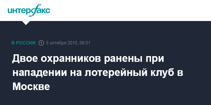 Двое охранников ранены при нападении на лотерейный клуб в Москве