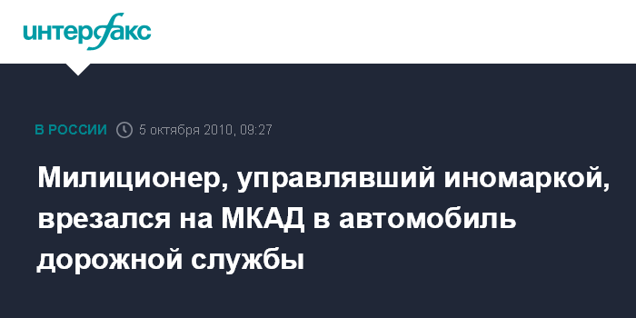 Москва. 5 октября. INTERFAX.RU - Сотрудник милиции погиб ночью в ДТП на МКАД, сообщил "Интерфаксу" источник в правоохранительных органах во вторник.
