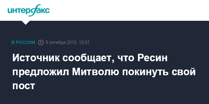 Источник сообщает, что Ресин предложил Митволю покинуть свой пост