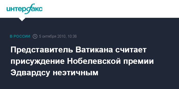 Представитель Ватикана считает присуждение Нобелевской премии Эдвардсу неэтичным