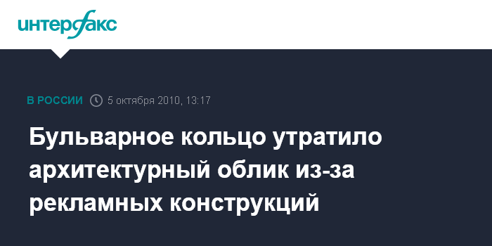 Москва. 5 октября. INTERFAX.RU - Комитет по культурному наследию Москвы (Москомнаследие) обеспокоен чрезмерностью рекламных конструкций на исторических территориях столицы.