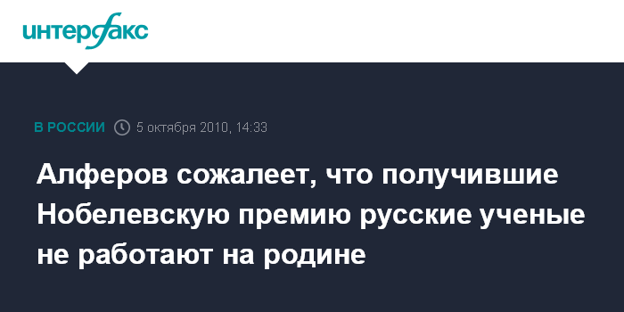 "Увы, российскими учеными их назвать нельзя, поскольку они живут и работают в Великобритании", - добавил Алферов.