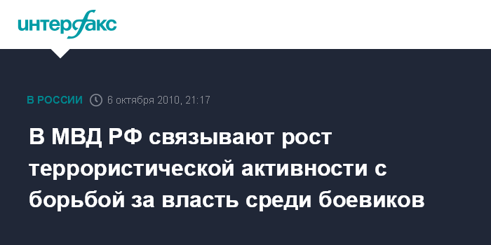 В МВД РФ связывают рост террористической активности с борьбой за власть среди боевиков