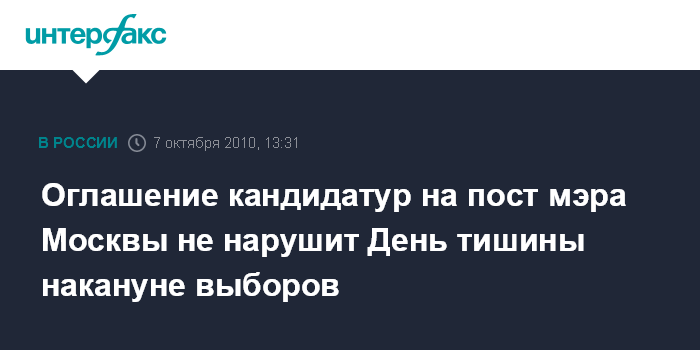 Оглашение кандидатур на пост мэра Москвы не нарушит День тишины накануне выборов