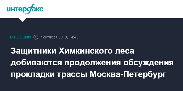 Москва. 7 октября. INTERFAX.RU - Защитники Химкинского леса пожаловались в Общественную палату РФ на то, что обсуждения проекта трассы Москва - Петербург проходят за закрытыми дверями, и общественность по-прежнему исключена из дискуссии.