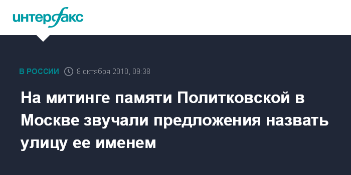 "Мне кажется, что улица Лесная через год должна быть названа именем Анны Политковской. Для этого нужно собрать подписи. У нас есть время, и в ближайшее время мы приступим к этому. Мы считаем, что было бы неплохо, если бы новый президент Дмитрий Анатольевич Медведев поддержал эту инициативу", - заявил Муратов, выступая на митинге памяти Политковской напротив станции метро "Чистые пруды".