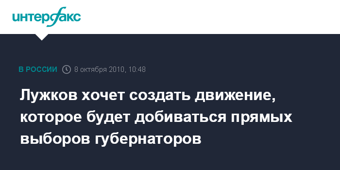 Лужков хочет создать движение, которое будет добиваться прямых выборов губернаторов