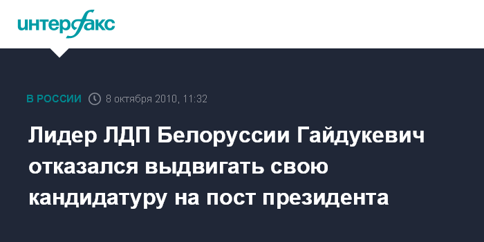 Лидер ЛДП Белоруссии Гайдукевич отказался выдвигать свою кандидатуру на пост президента