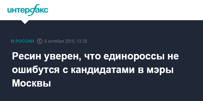 Ресин уверен, что единороссы не ошибутся с кандидатами в мэры Москвы