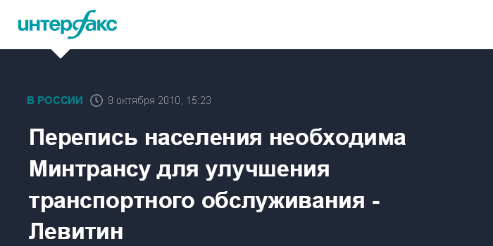 Перепись населения необходима Минтрансу для улучшения транспортного обслуживания - Левитин