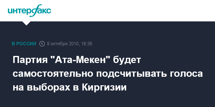 Бишкек. 9 октября. INTERFAX.RU - Социалистическая партия "Ата-Мекен" намерена вести свой собственный параллельный подсчет голосов на выборах в парламент Киргизии 10 октября, сообщил "Интерфаксу" в субботу заместитель председателя этой партии Равшан Джеенбеков. "Завтра в здании Национальной филармонии в Бишкеке будет расположен наш штаб, где мы будем вести свой собственный учет голосования", - сказал Р.Джеенбеков. По его словам, от "Ата-Мекен" на каждом из участков будут представлены наблюдатели. После подведения итогов они посредством факсимильной связи или по телефону будут передавать данные в этот штаб.
